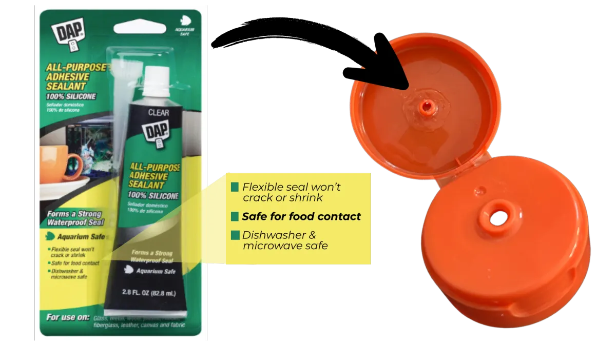 While we wait on a fresh batch of upgraded, leakproof caps from our manufacturer, we MacGyvered a fix: a dab of food-grade silicone inside the current caps to seal the deal (literally).